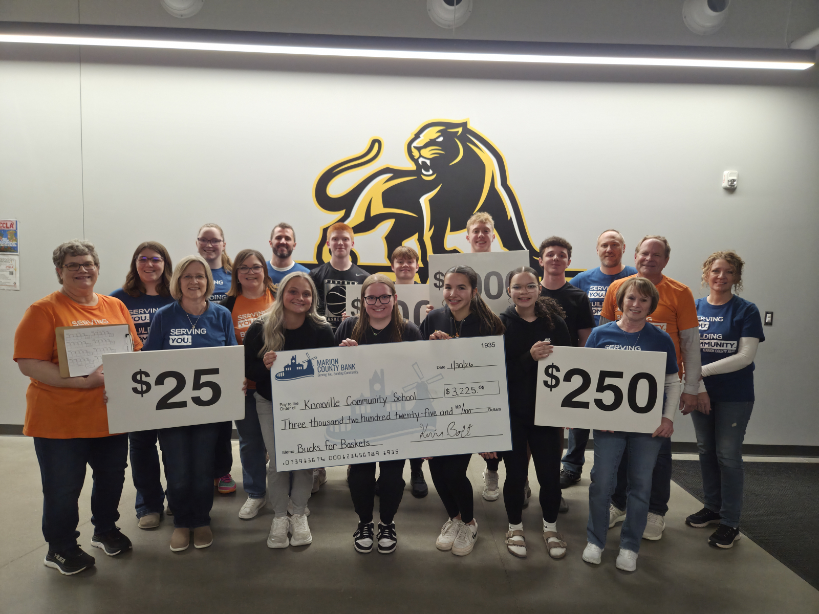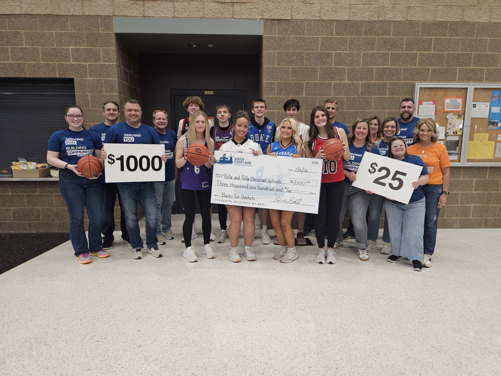 Across four schools—Pella, Pella Christian, Knoxville, and Melcher‑Dallas—students stepped up, crowds showed up, and together those students earned a $13,075 donation for their schools. With 28 student participants, this year marks the second-highest donation total in the history of Bucks for Baskets.
